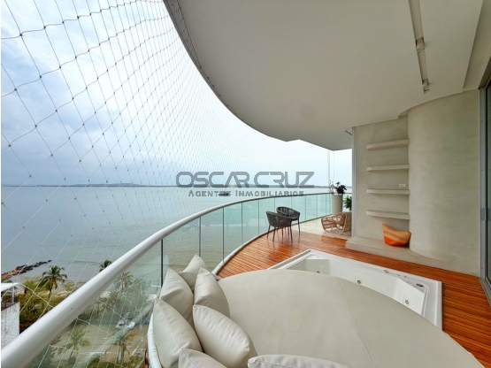 Venta de Apartamento tipo Penhouse en el Exclusivo Edificio Portomarine Luxury Residences en Bocagrande Cartagena - Area: 289 m2 - Alcobas: 3 Reparto: Acceso directo por ascensor Amplia Sala Comedor Terraza Vista a la Bahia Cocina Cerrada Cerrada integral con isla (Remodelada) Baño Social Zona de Labores mas Cuarto y Baño de Servicio Hall de Alcobas Alcobra Princial Vista a la Bahia con Walking closet y Baño Privado Dos Alcobas Auxiliares Baños Auxiliar Dos Parqueaderos   Portomarin Es un exclusivo condominio de apartamentos de 289m2, 321m2 con altura libre de 3mts y Penthouse Residences de 602m2 con altura libre de 5 mts. Amplias terrazas con ventanas de piso a techo donde podrá apreciar un extraordinario paisaje urbano y la fascinante actividad naviera de la bahía en la ciudad de Carategena en Bocagrande, Respaldado con 40 años de experiencia por el Reconocido  Arquitecto Carlos Ott que ha avalado importantes proyectos en los Emiratos Árabes Unidos, China, Singapur, India, Francia, Alemania, Canadá, Estados Unidos, Panamá, Brasil, Argentina y Uruguay..   Dentro de sus amenidades podemos encontrar que portomarin es el unico edificio en la zona que cuenta con un muelle privado para navegar en la bella Bahia de Cartagena, ademas de piscinas con hermosas vistas, gimnasio, salon social, entre otros. .